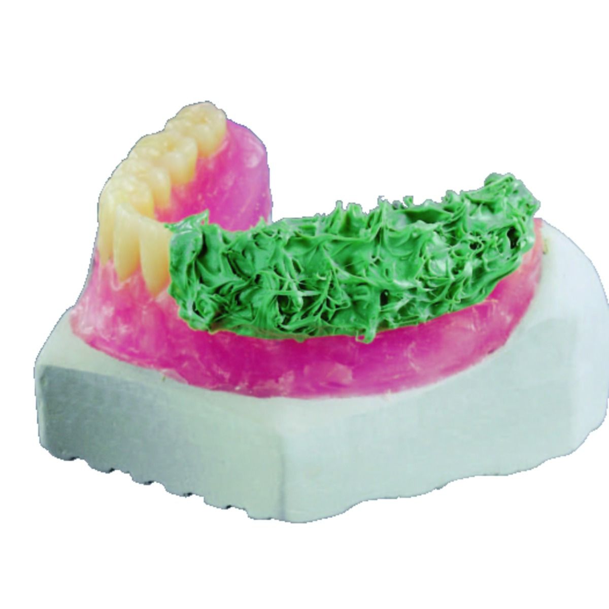 Masse pour isolation et pour modèle, à base de silicones «C», à basse consistance, bonne stabilité, de haute dureté finale (75 shore A). Pour l’isolation de dents acryliques porcelaine pendant l’implantation.