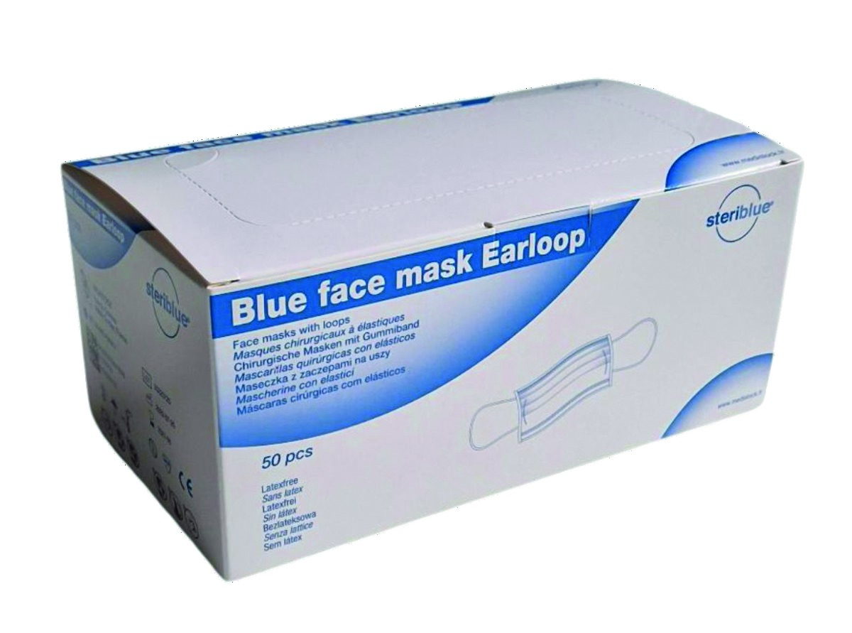 Masques earloop Bleu - Boîte de 50 - STERIBLUE